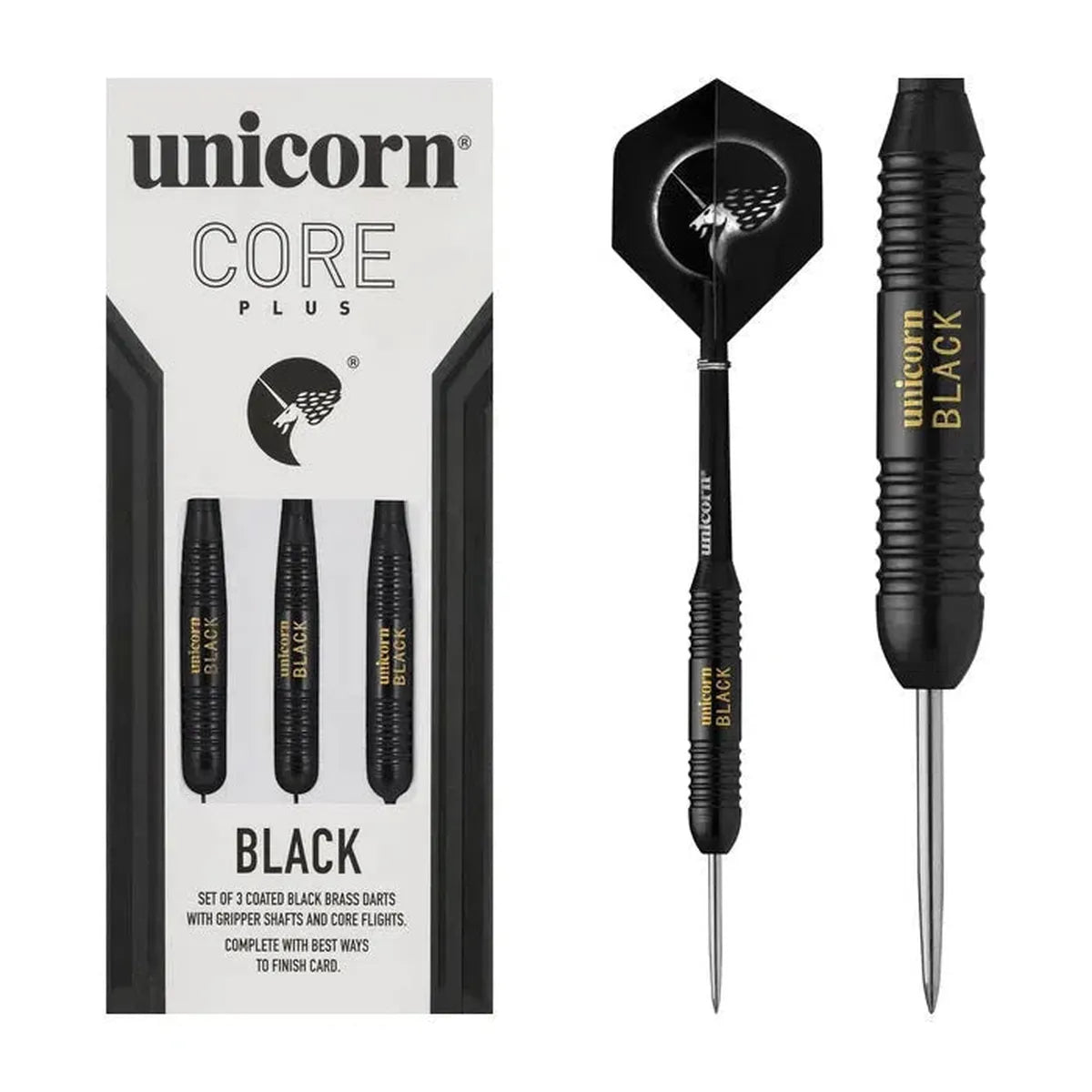 Unicorn Core Plus Win Black Brass Steel Tip Darts Contains: 3 Darts, 3 Dart Flights and 3 Dart Shafts.