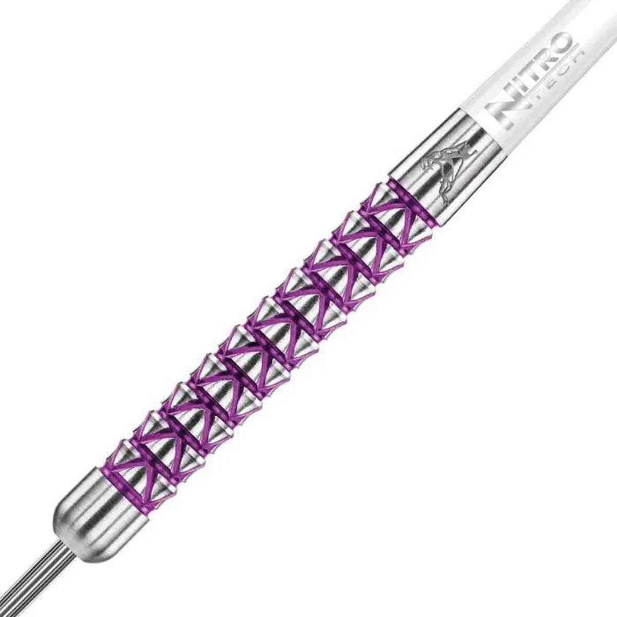 Fundamentally set up with Red Dragons class leading Nitro Tech shafts and exclusive Snakebite Hardcore flights making them immediately ready for action. With the devil in the detail, under the skin Vyper are made from our world class 90% tungsten alloy, and feature the highest grip level 5 throughout the length of the barrel. With a striking parallel profile interspersed with the V10 reverse mill cut, the finish in hot purple makes them a simply breath taking dart in every area.