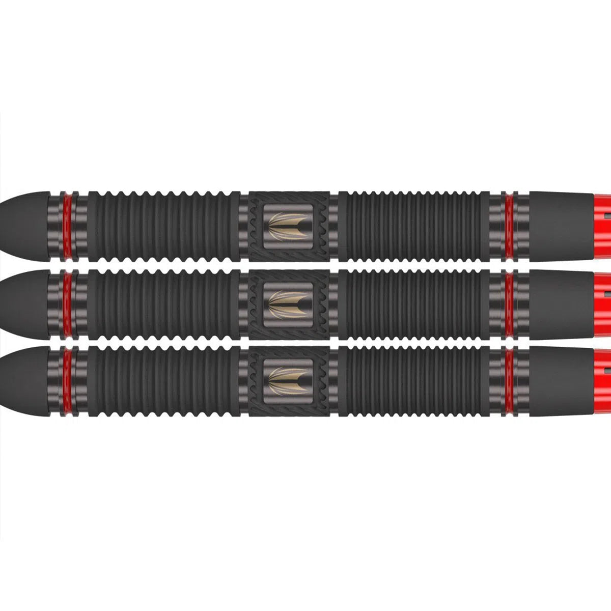 Target’s 26mm smooth Swiss Points are included in the set, incorporating a patented locking mechanism, allowing for effortless switching of dart points. The taper and thread technology provide a secure and locked-in position, delivering stability and precision during every throw. Use the included Swiss Point Tool for effortless tip changes in seconds.