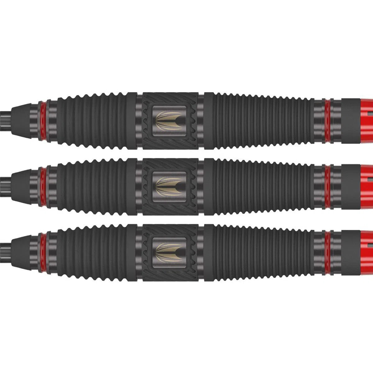 Target’s 26mm smooth Swiss Points are included in the set, incorporating a patented locking mechanism, allowing for effortless switching of dart points. The taper and thread technology provide a secure and locked-in position, delivering stability and precision during every throw. Use the included Swiss Point Tool for effortless tip changes in seconds.