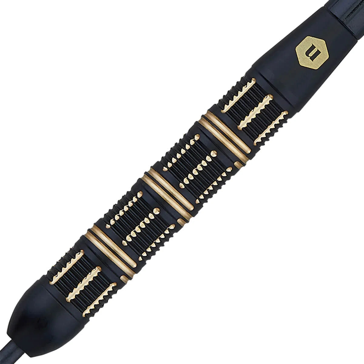 Top Brass darts have military precision engineering and each set of darts are coated black which allows the incredible detailing on the barrels to shine through. These darts are completed with Gripper Shafts and Top Brass Ultrafly Flights.