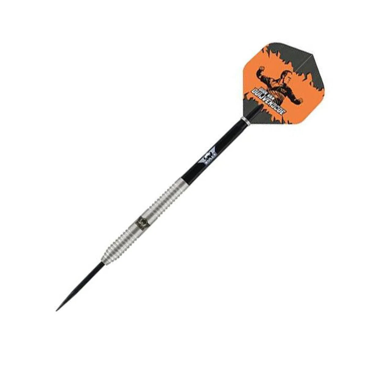 The Bull’s Dirk van Duijvenbode is a 90% tungsten dart set and is based on the Bull’s Phantom Grip 80%. The van Duijvenbode 90% is a silver phantom gripped dartset with grip all over the barrel. Dirk’s Darts are being manufactured in New Zealand, famous for its high quality darts. The dart set comes with the Bull’s Powerflite Dirk van Duijvenbode, the Black Bull’s Nylon Medium Shaft and the Bull’s Steel Dart Points Black 35mm. Each official Bull’s Dirk van Duijvenbode 90% dart has both the ‘Bull’s’ and the ‘Dirk’s hand sign’ laser engraved in the barrels.