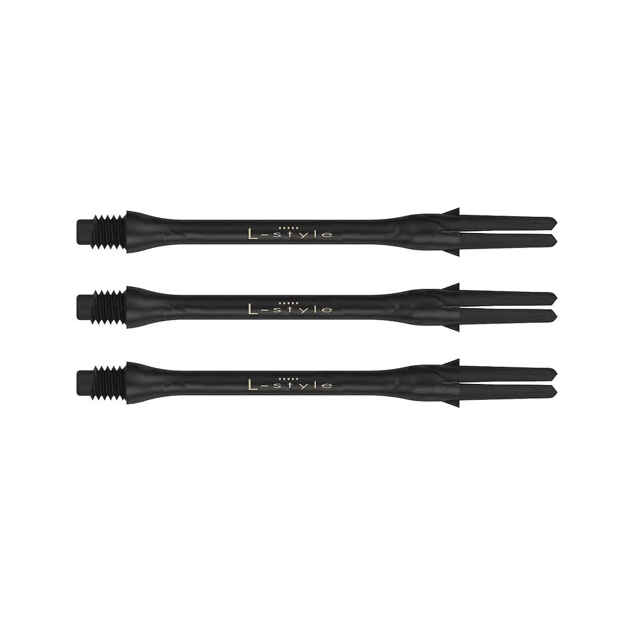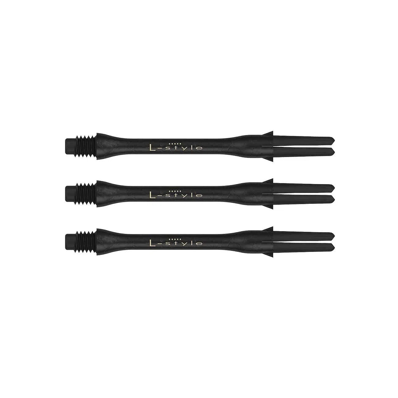 L-Style L-Shafts - Carbon - Straight Lock. Japanese material manufacturing technology. Precision moulded, for accurate 2ba thread form. The flights work best when using the Shell Lock Rings or the Champagne Rings as these help lock everything together to create a very strong hold. Measurement is taken from the top of the thread to the bottom of the slits. Each pack contains 3 shafts plus a set of champagne rings.