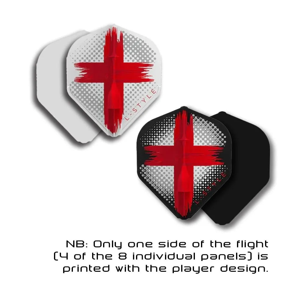 NB: Only one side of the flight (4 of the 8 individual panels) is printed with the player design. The reverse is blank.