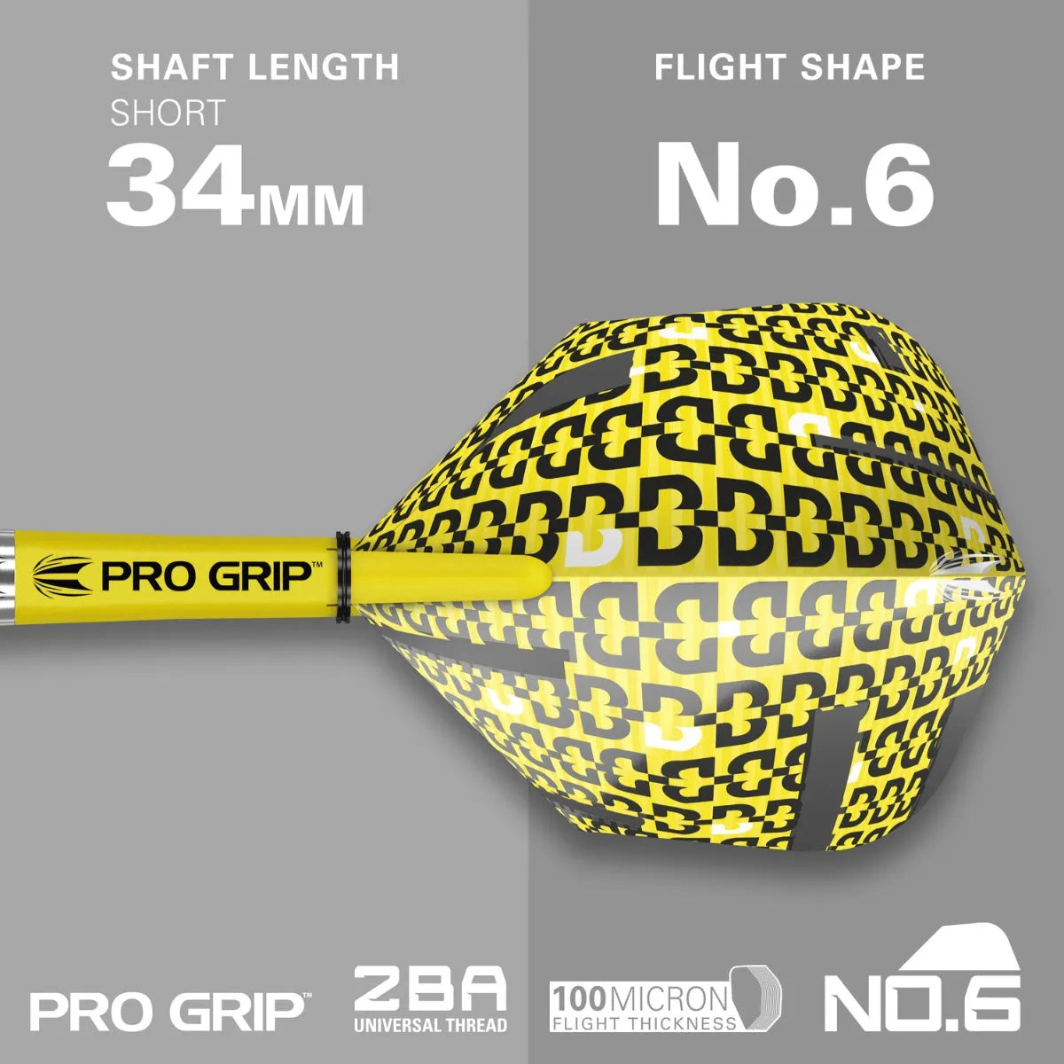 Barrel Design: Each barrel is finished with a yellow Pro Grip shaft and eye-catching flight exclusively designed for the range.