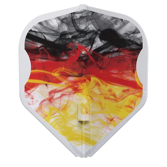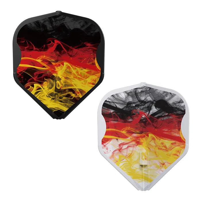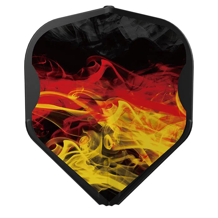 The 1st Edition of the RYB Series flights in black, red and yellow - standard L1 shape. A unique design prepared to represent the colours of Germany on the EZ style fully integrated dart flight.