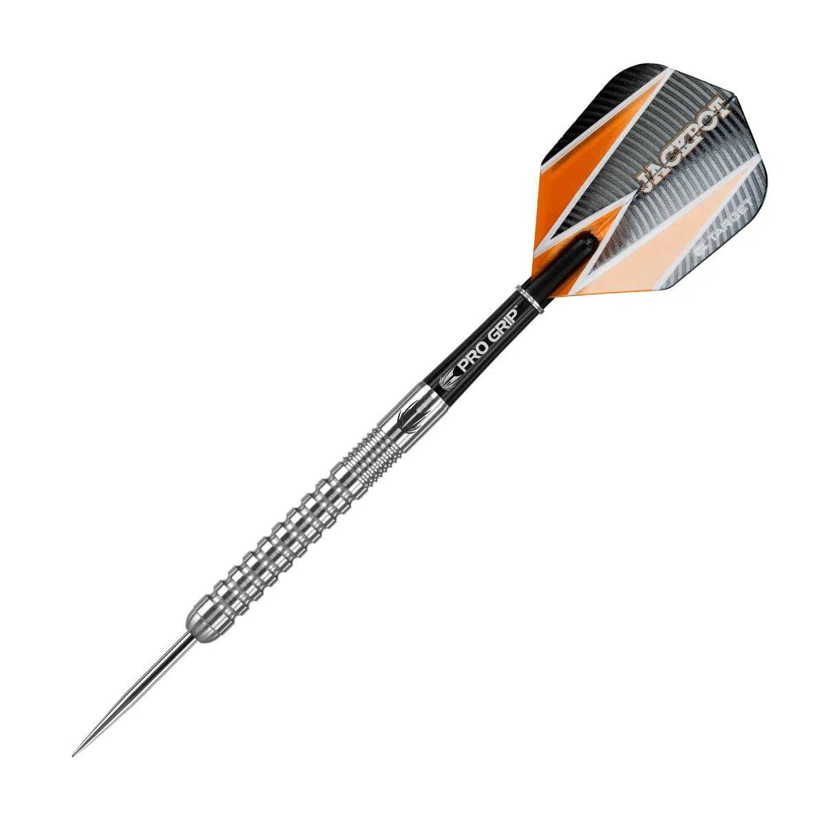 This 90% Tungsten barrel features contemporary styled grooves along the front of the barrel, with a fine groove pattern at the rear for enhanced grip. Each dart comes complete with Target Pro Grip Shafts and Target Vision Flights.