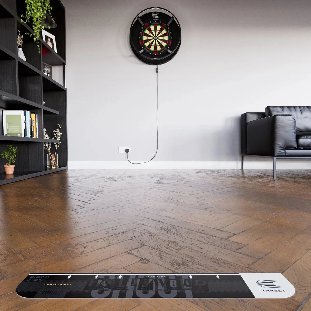 Crafted with a durable, high-grip surface and backed with strong 3M adhesive, it sticks securely to any smooth floor, creating a professional and reliable oche marker for every throw. Built to last and designed with clean, bold styling, it’s the perfect finishing touch for any serious darts setup.