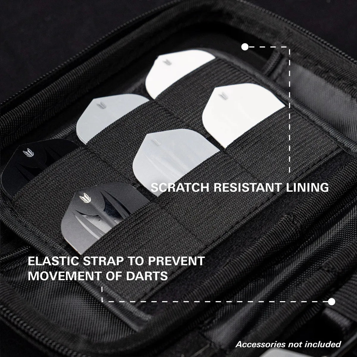 Constructed with a durable hard shell, the XL Takoma keeps your darts safe and protected. The scratch-resistant interior lining secures 6 fully assembled darts, with generous space for accessories including spare flights, shafts, Swiss Points, and your Swiss Point tool delivering a premium blend of heritage, function, and design.