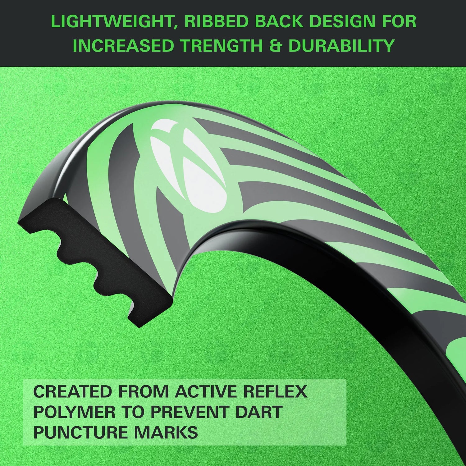 The Xbox × Target Dartboard & Surround Bundle brings together the elite performance of the TOR dartboard with bold, gamer-driven styling to create a setup that feels as good as it looks. Built from the same high-grade 215-MDG Madagascan sisal as the original TOR, this special edition retains all the performance benefits players expect from excellent self-healing qualities to outstanding dart retention and reduced bounce-outs thanks to its precision low-profile wiring. But instead of the traditional colour palette, the board has been transformed with a striking Xbox twist, replacing classic tones with bright Xbox green and sleek, modern graphics that reimagine what a dartboard can look like.