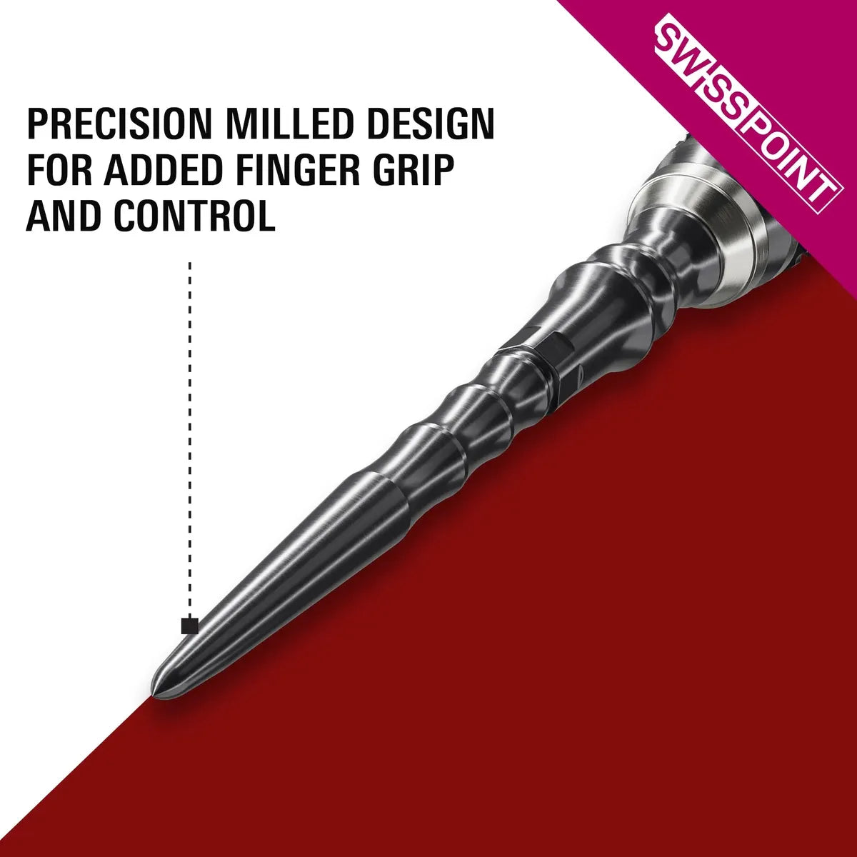 Quick-Change Swiss Point System Compatible with the Swiss Point system, this model allows players to change dart points in seconds using the pocket-sized SP tool (sold separately). The system’s innovative tapered thread and custom-engineered groove ensure the point remains firmly locked during play, while enabling quick replacement of broken tips minimizing downtime and maximizing play continuity.