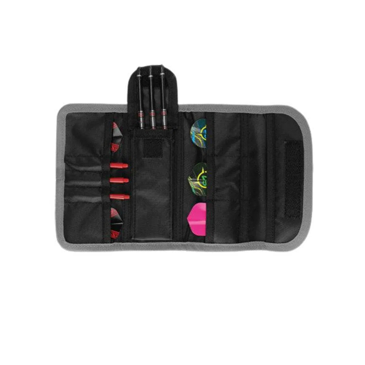 Designed for darts enthusiasts, this lightweight and high-capacity darts wallet offers secure storage with a reliable Velcro fastener. It comfortably holds one complete set of darts with shafts and features nine compartments to organize your darts and accessories efficiently. The compact dimensions make it easy to carry while providing ample space for your essentials.