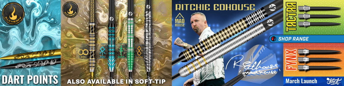Shop the latest ranges from leading brands including Target, Winmau, Unicorn, Red Dragon, Harrows, and Shot, plus official player shops for stars such as Luke Littler and Peter Wright. Each hub brings together signature darts, flights, and merchandise in one place.